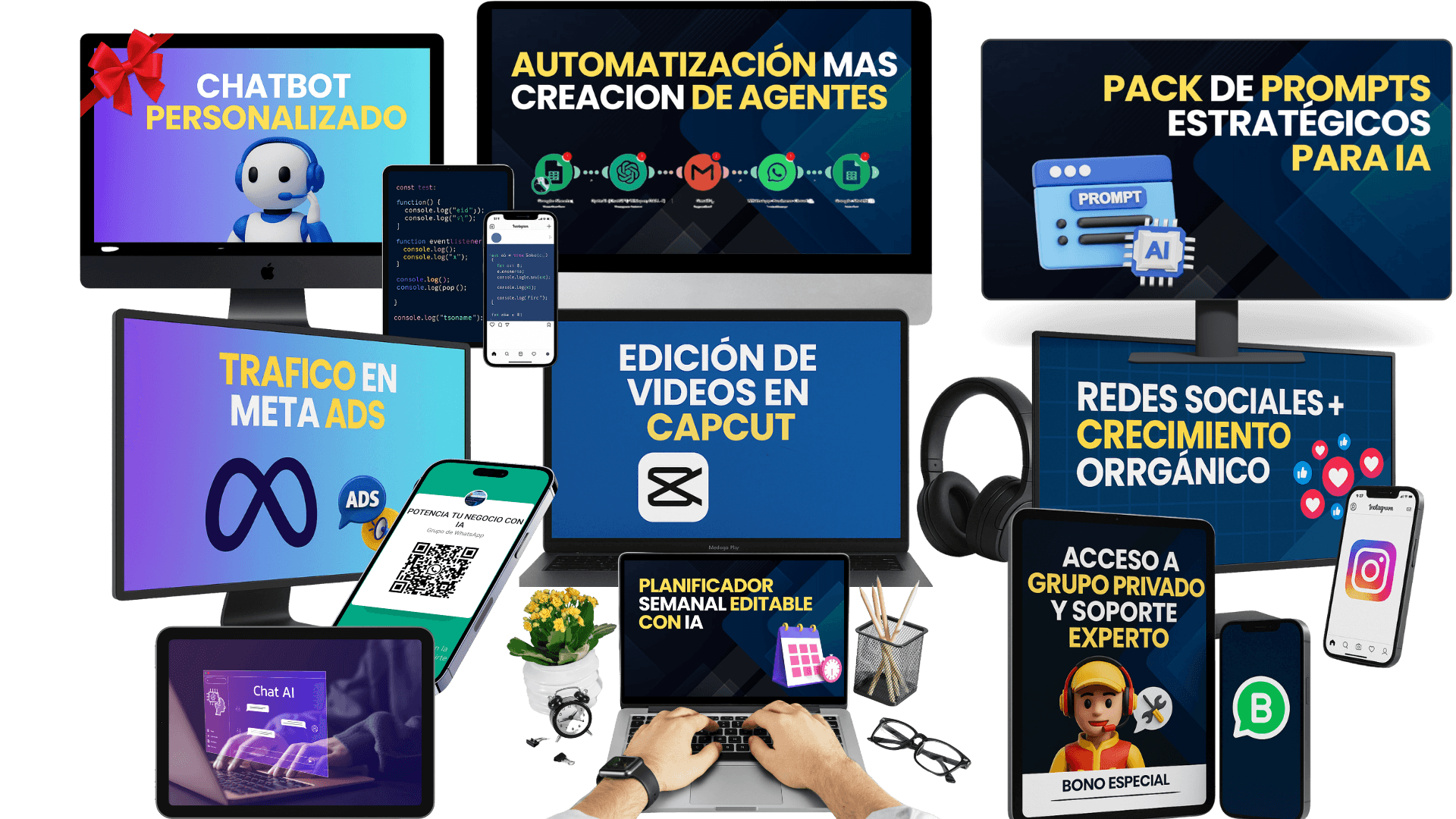Los bonos estarán disponibles dentro del campus una vez te inscribas. El chatbot para WhatsApp lo recibirás mediante una breve encuesta que nos permite personalizarlo a tu negocio. ¡Sí, será exclusivo para ti!